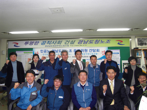 - 상급단체 결정을 위한 전국민주공무원노동조합(민공노)과 경남도청공무원노동조합 운영위원과의 간담회 추진. 끝.