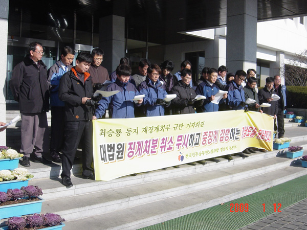 지방자치권 포기, 재징계(최승룡) 규탄 기자회견 페이지 정보 작성자 도청노동조합 댓글 0건 조회 951회 작성일 09-01-30 11:25 본문 ○ 일시 : 2009. 1. 12(월) 14:00 ○ 장소 : 경상남도청 중앙현관 목록 인쇄 이전글김해시공무원노동조합 제2대(6기) 출범식 참석 09.02.03 다음글전국광역자치단체공무원노동조합연합(광역노조연합) 회의 09.01.23